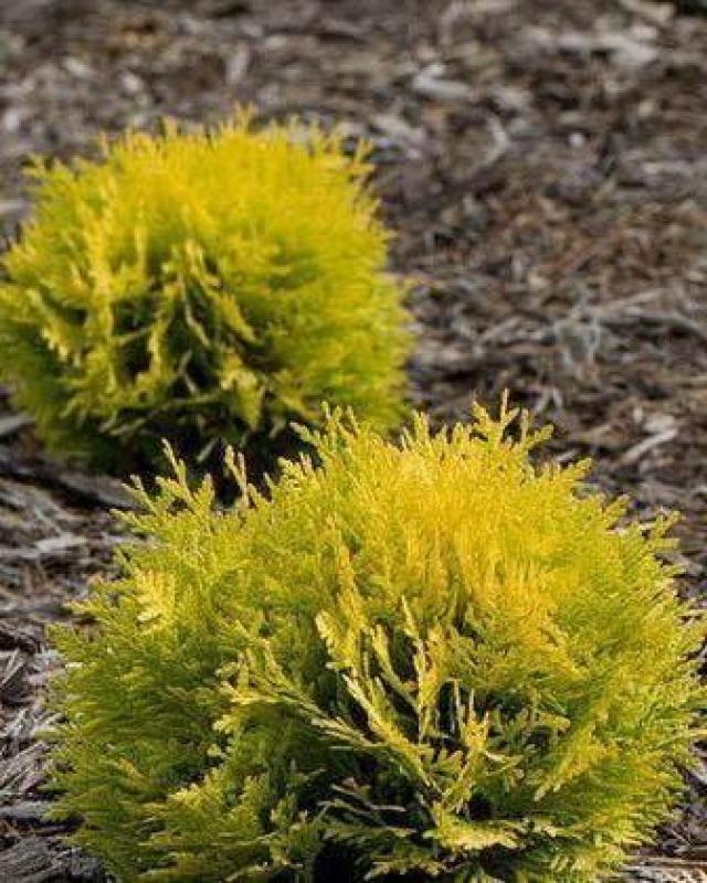 A dense, rounded plant with upright fans of canary yellow foliage, 'Autumn Moon' stays uniform and tidy without developing an oval, upright habit like most other yellow forms. Can be planted in a row to make a stunningly colorful border or for individual color spots throughout the landscape. Plant in full sun to part shade. Garden size is 3' tall and wide. Hardy to Zone 4.