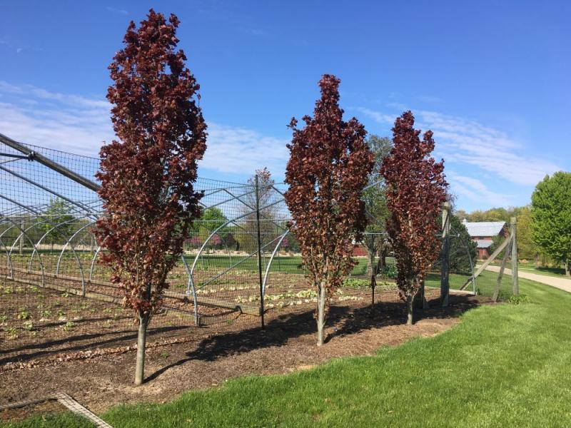 European Beech makes a striking purple-leaved, columnar accent plant. Vigorous growth but with a refined, compact habit. The copper-red spring foliage turns dark purple for the rest of the season, and is nicely ruffled. Grows 25-35' tall and 8-12' wide. Hardy to Zone 5.