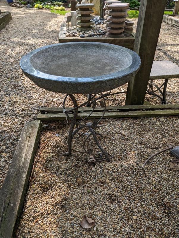 Birdbath w/Iron Vine Leaf Base Charcoal Granite