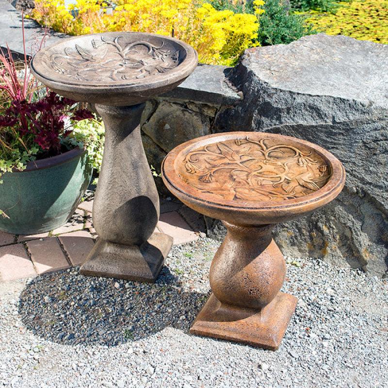 In this popular series of garden statuary, talented artist Klaus Kinast has carefully sculpted hummingbird themed ‘bas-relief’ (low relief) onto the surface of each piece. Hummingbirds are among the smallest of birds, hovering in mid-air seemingly motionless by beating their wings up to 90 times a second. Hummingbirds are the only birds that can fly backwards.