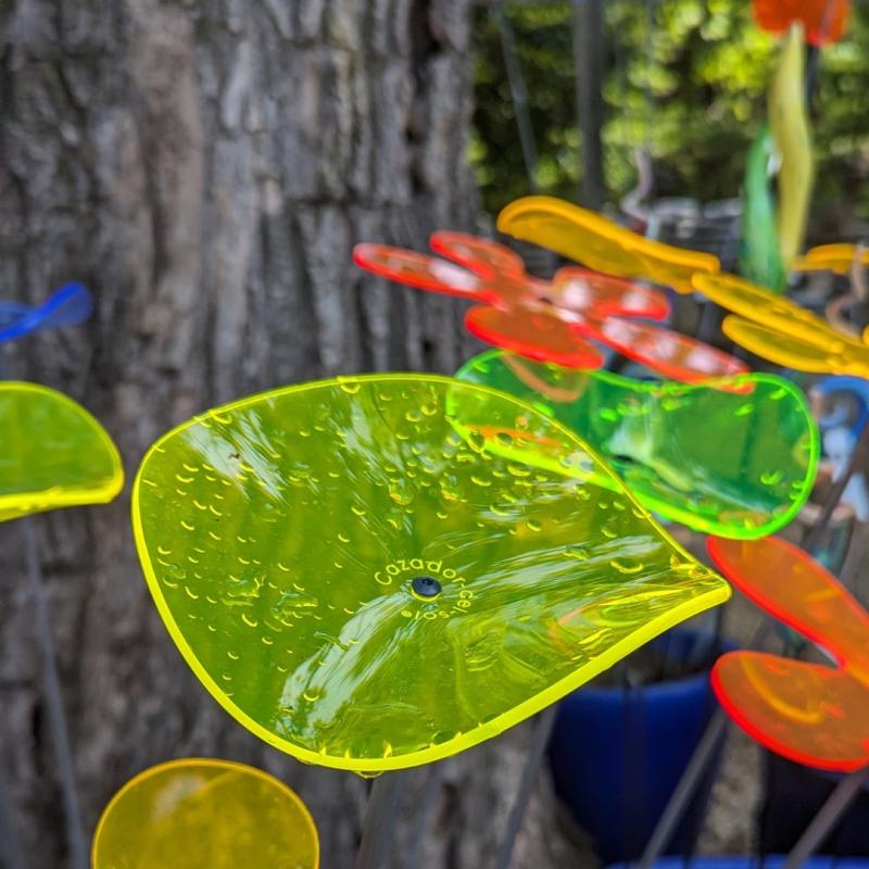 Wave-shaped, lemon suncatcher with swinging rod of fiber-reinforced plastic.