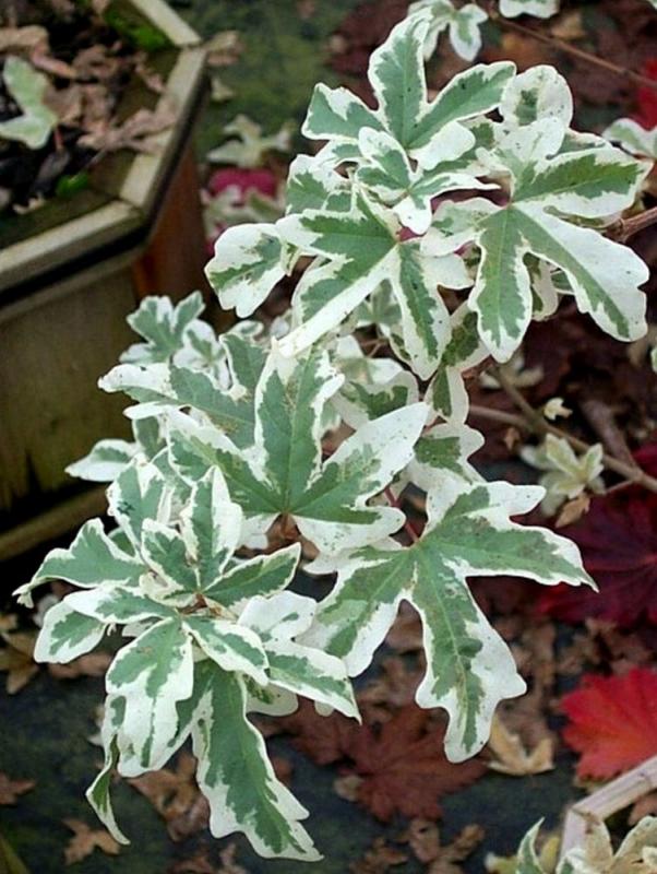This Variegated Hedge Maple is eye-catching each spring as new, small leaves emerge with a blush of pink. The leaves mature with green and white variegation. Performs best in  sheltered partial shade in order to prevent the sun from scalding the white portions of the leaves. Grows 10-15' tall with a spread of 8-12. Hardy to Zone 5.