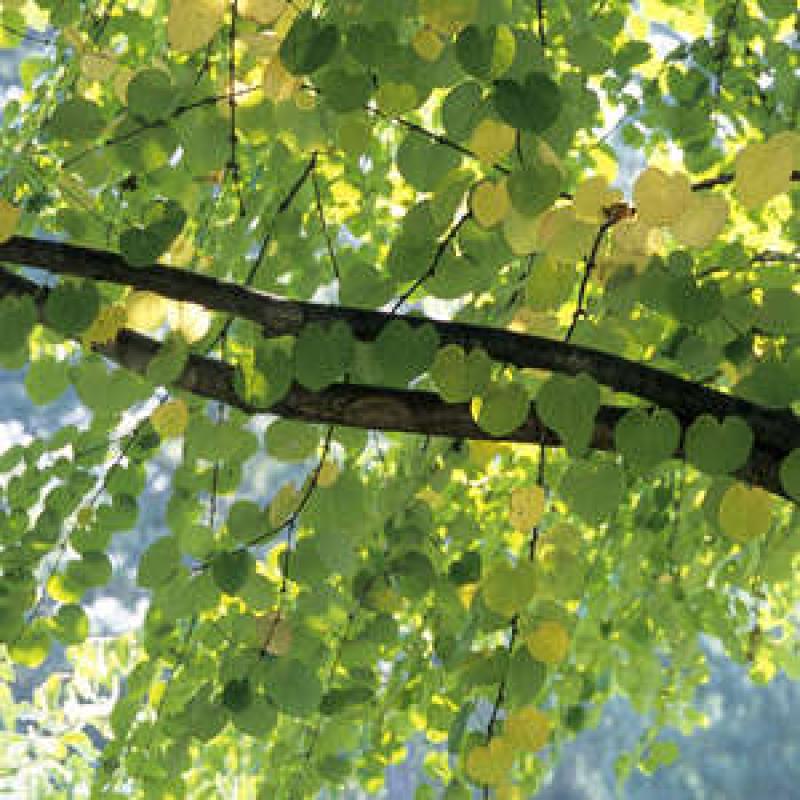Multi-stemmed form of Katsura--a lovely and elegant tree. Heart-shaped foliage emerges bronzy purple, fading to light green, then blue-green for the summer. Fall foliage is apricot yellow and has a sweet fragrance. Grows 40' tall and wide and is hardy to Zone 4.