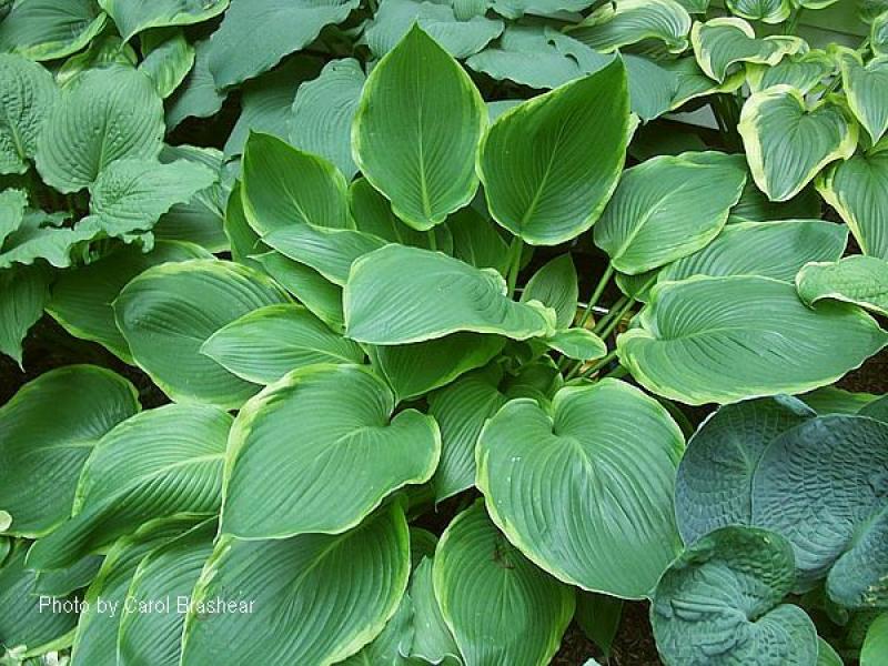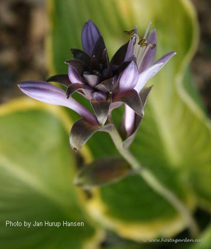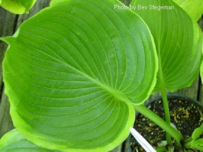 A sport of 'Daybreak' that quickly forms a wide mound. The green leaves have narrow gold margins that widen as the plant matures. Grows into a very large clump 28” tall and 70” wide. Lavender flowers in mid summer.