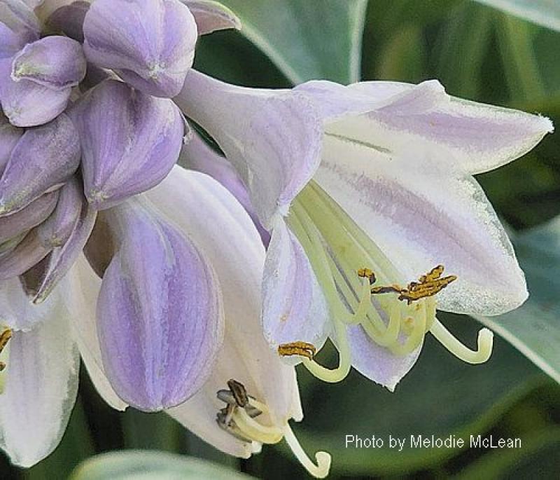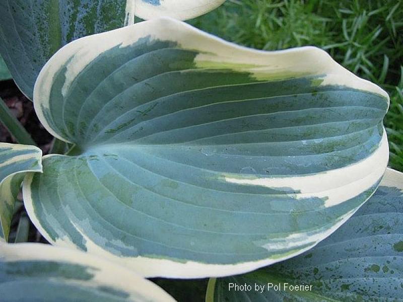 This fantastic sport of 'Halcyon' is one of our very favorites. The beautiful blue leaves edged by yellow margins in spring that turn creamy white in summer. It looks great all season, right up until autumn's first frost. Thus, the name. Grows 16" tall and 36" wide. Lavender flowers in mid summer.