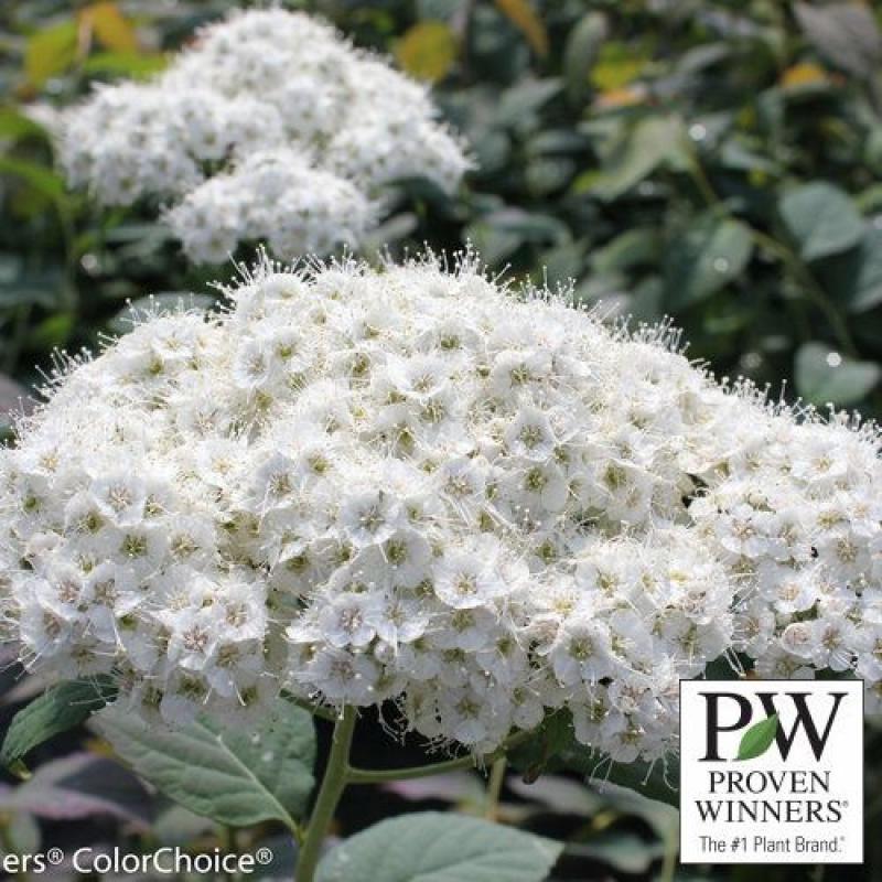 Cool blue foliage with hints of burgundy contrast with large, crisp white flower clusters in early summer. Little pruning is needed, but if you want to, give it a light trim after flowering to shape and promote new, colorful growth. Foliage turns rich red in fall. Plant in sun to part shade, where it will grow 2-3' tall and wide. Hardy to Zone 3.