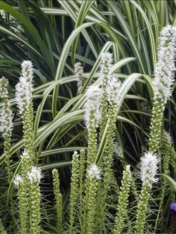 (Blazing Star) spires of white, standing up to 36 inches tall; full sun; Zone 3