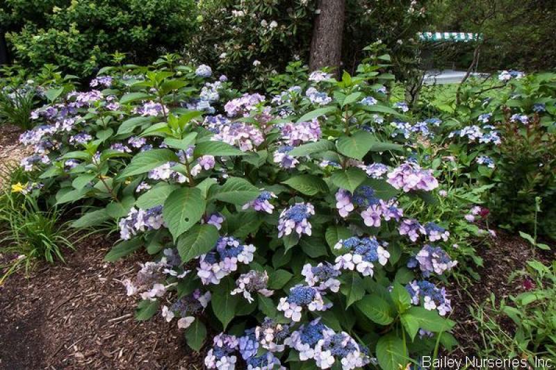 A wonderful, reblooming lacecap hydrangea with abundant blue or pink blooms all summer on both old and new wood. Sturdy red stems and burgundy fall foliage add to the appeal. Best grown in afternoon shade, 3-4' tall and wide. To ensure early blooms from old wood, try dumping a bag of mulch in the middle of the plant in November, before really cold weather to protect some of the lower buds. Wait until late April to pull back the mulch and trim the stems back to a few buds. Hardy to Zone 4.