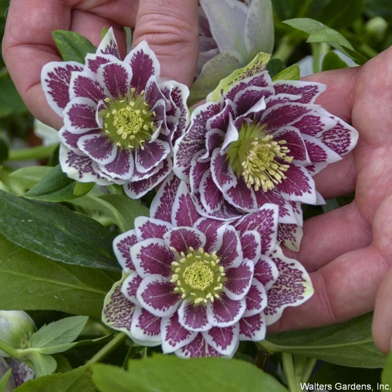 Walters Gardens hybridizer Hans Hansen has a passion for hellebores. In his breeding work, he selects for plants with notable vigor, showy floral displays with large numbers of blossoms per plant, and rich flower colors. The WEDDING PARTY® series showcases his double flowered selections, available in numerous, beautiful color shades.