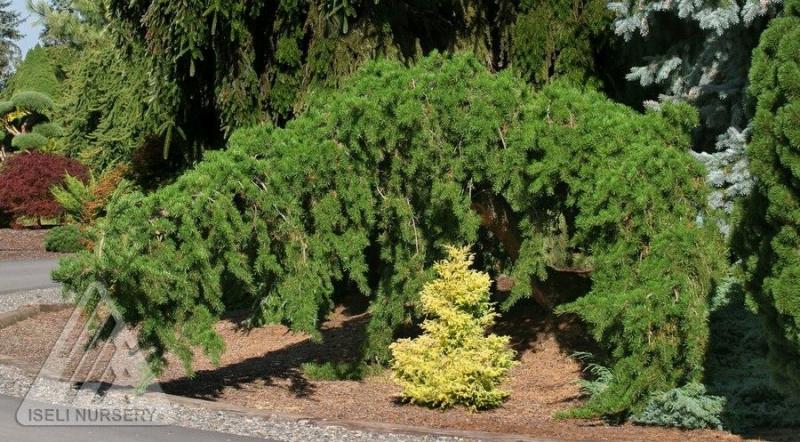 Wildly undulating, pendulous branches give unique character to every plant of this distinctive form of Jack Pine. Plants bend and swoop to create a curvy, living sculpture decorated with resinous winter buds. This collector's plant, first discovered in a garden in Richfield, Minnesota, seems to be a reference to everyone's eccentric relative. Extremely hardy and adaptable, it tolerates heat, cold, and dry, sandy, or poor soils. Garden size varies, as each plant seems to grow in its own, unique way, but it can go to 12' tall and 8' wide, or might just as easily be 4-5' tall and 10' wide. Hardy to Zone 2.
