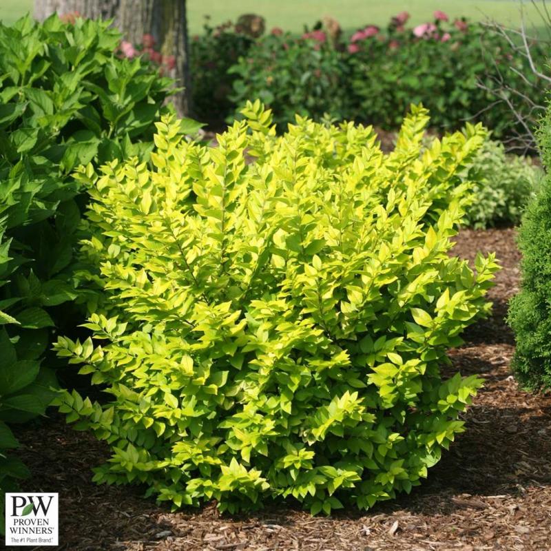 High quality, glossy foliage emerges bright yellow and ages to chartreuse. This non-invasive privet is deer resistant and easy to grow. It's a smart choice for hedging and screening. A single specimen provides a glow of color in the landscape. Prune to shape after flowering, if desired. Stems of foliage make excellent filler in floral arrangements. It grows 4-6' tall and wide is sun or part shade. Hardy to Zone 5.