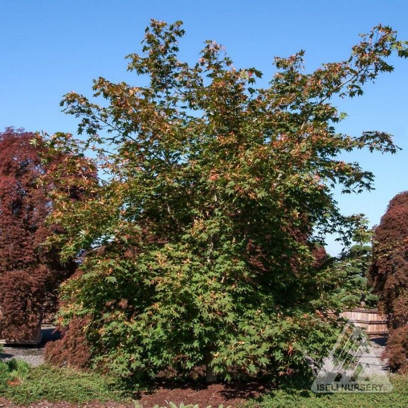 A hardy hybrid of Korean and Japanese maple, combining the hardiness and durability of the Korean maple with the beauty of the Japanese maple. The foliage of this outstanding treer emerges red in spring, changing to green by midsummer. Showy pink samaras stand out against the green summer foliage. When other fall color has faded in northern landscapes, North Wine® continues the show with dramatic tones of orange and scarlet. Plant in sun to part shade. Grows up to 20' tall and 15' wide. Hardy to Zone 4.
