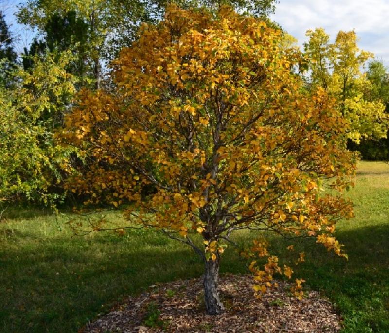 Cinnamon CurlsĀ® is a distinctive dwarf selection of Korean birch which grows in a diminutive, compact, single-stemmed form. Attractive, white, exfoliating bark with cinnamon colored undersides curl in strips. Best grown in full sun to very light shade. A real cutie. Garden size is 15' tall and 12' wide. Hardy to Zone 4.